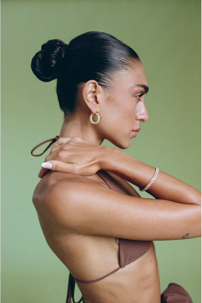 Featuring 18 carat gold vermeil with a sterling silver base and cubic zirconia gems.